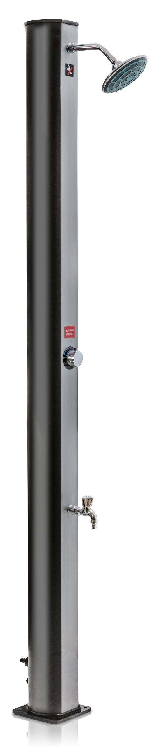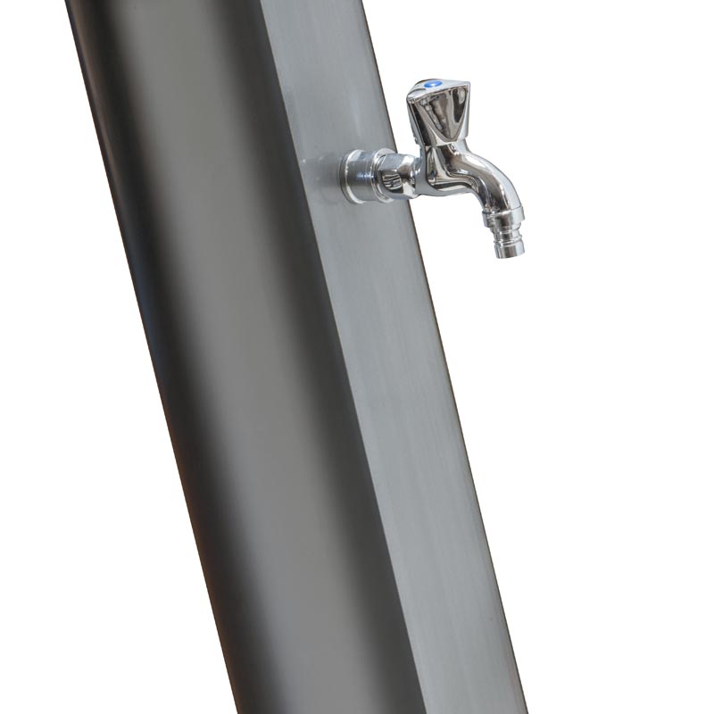 Bellissima ed elegante doccia solare in polietilene nero, il suo serbatoio di 20 litri permette di riscaldare l’acqua grazie all’azione del sole senza la necessità di alimentarla con acqua calda.