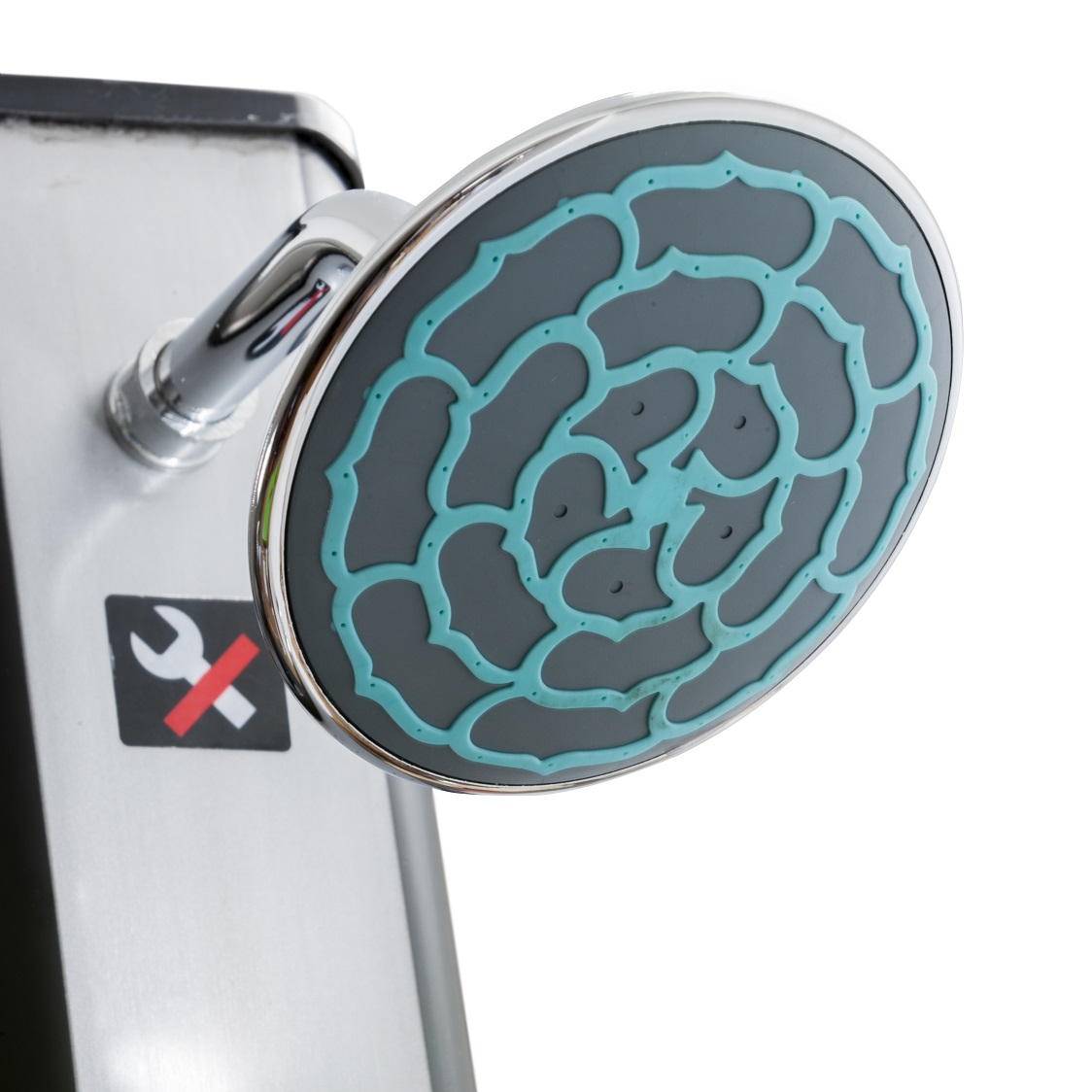 Doccia in PVC con finitura inox, miscelatore e rubinetto lava piedi