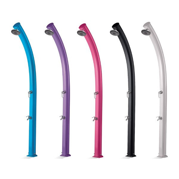 Bellissima ed elegante doccia solare in alluminio, il suo serbatoio di 25 litri permette di riscaldare l’acqua grazie all’azione del sole senza la necessità di alimentarla con acqua calda.
