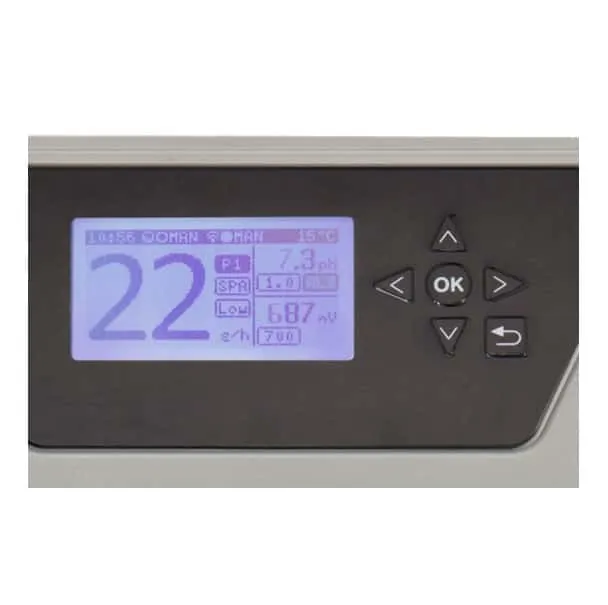 • Display digitale retroilluminato dove vengono mostrati i valori di: pH, Rx e quantità di Cl2 prodotta