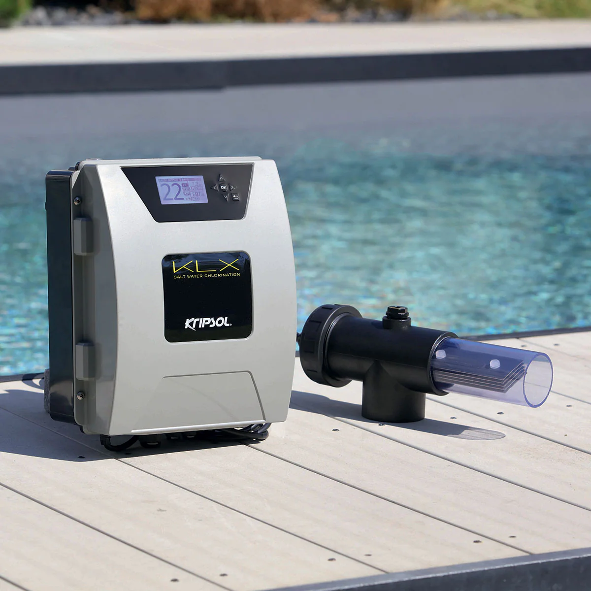 Il cloratore a sale Kripsol KLX è un apparecchio perfetto per la tua piscina, affidabile e performante, oltre alla disinfezione tramite l’elettrolisi del sale, è in grado di gestire tutte le funzioni della piscina, la regolazione del ph, le luci, e il funzionamento della pompa di filtrazione.