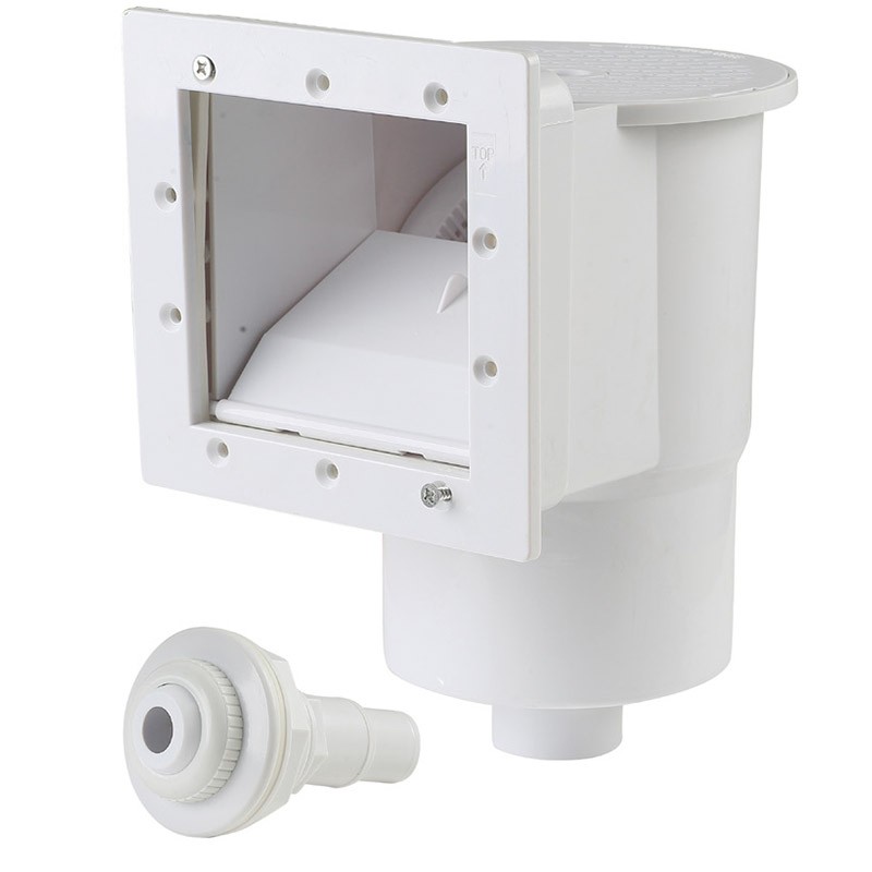 Piccolo skimmer per piscine fuori terra e per piscine interrate.