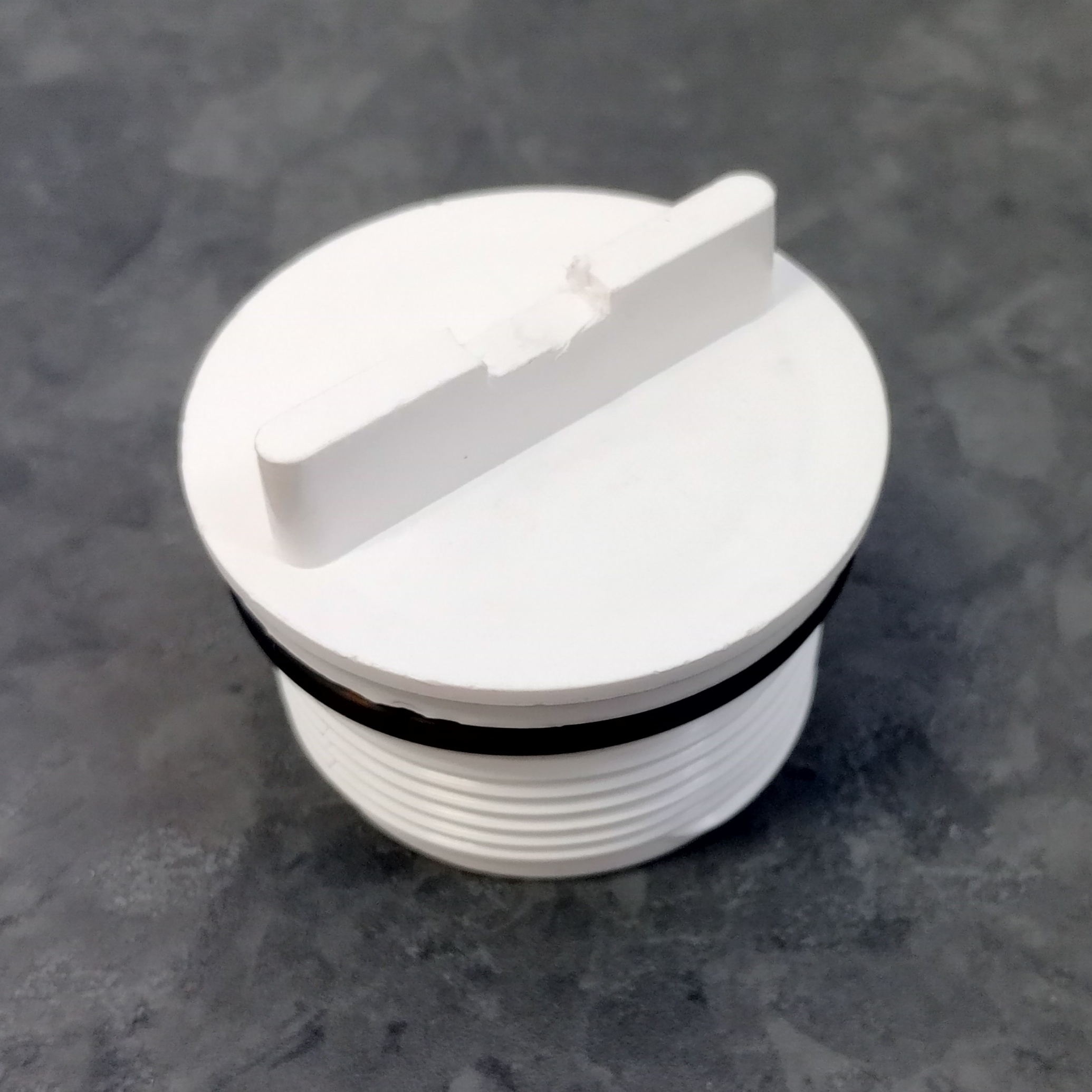 Tappo in abs bianco con guarnizione, filetto da 1″1/2, adatto per la chiusura delle bocchette
